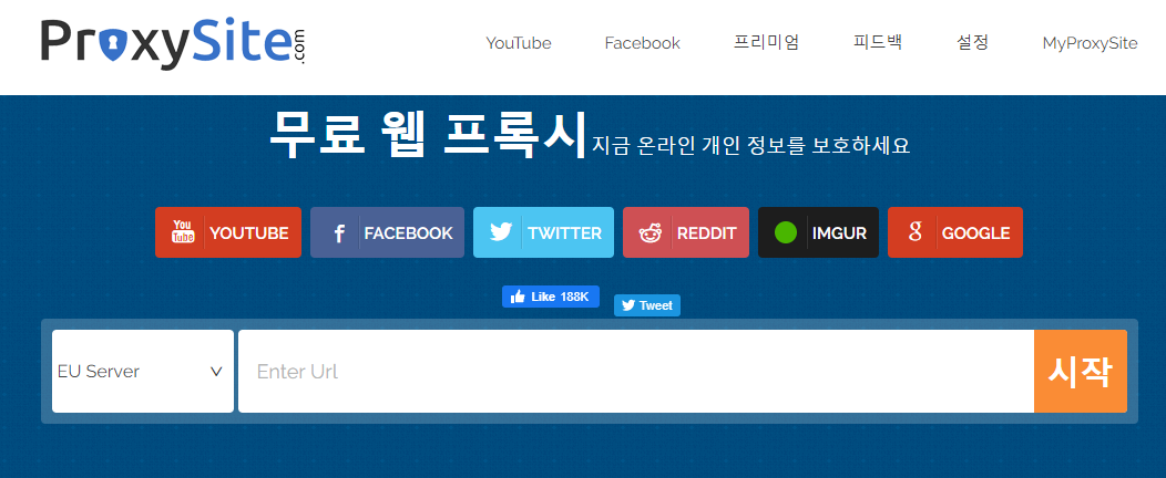 2) 우회할 홈페이지를 적은 후 시작을 눌러 주시면 끝납니다.