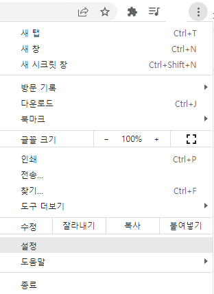 1. 크롬 설정 들어가기