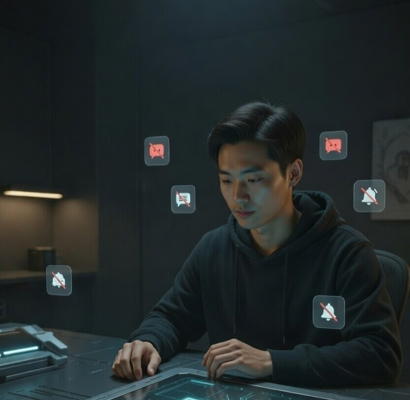 - 활용: 작업표시줄 우측 하단의 종 모양(알림 센터)을 누르거나 Win + N을 눌러 '방해 금지' 모드를 켜세요.